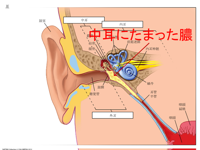 小児において就学前に 90% が一度は罹患する中耳疾患であり,小児難聴の最大の原因です。言語発達、学業や行動上の問題に影響を及す可能性があります。