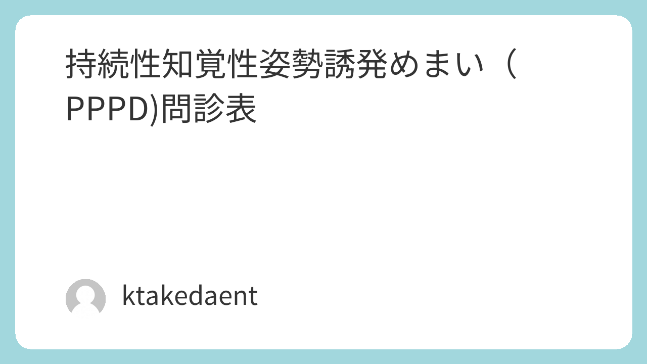 持続性知覚性姿勢誘発めまい(PPPD)の問診票を電子化し、結果が印刷できるページを作りました。PPPDは、近年慢性めまい患者の多くを占める疾患と考えられており、スクリーニングのための簡易な問診票として、新潟大学で運用されているNPQを電子化しております。