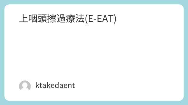 のどの病気 上咽頭擦過療法(E-EAT) 上咽頭擦過療法は慢性上咽頭炎に行う治療です。そのためには慢性上咽頭炎の診断基準を満たす必要があります。慢性上咽頭炎は、以下の3項目すべてを満たす場合に診断する。1カ月以上続く薬物療法などによっても症状が改善しない、慢性上咽頭炎を疑う症状があ... 2025.12.14 のどの病気